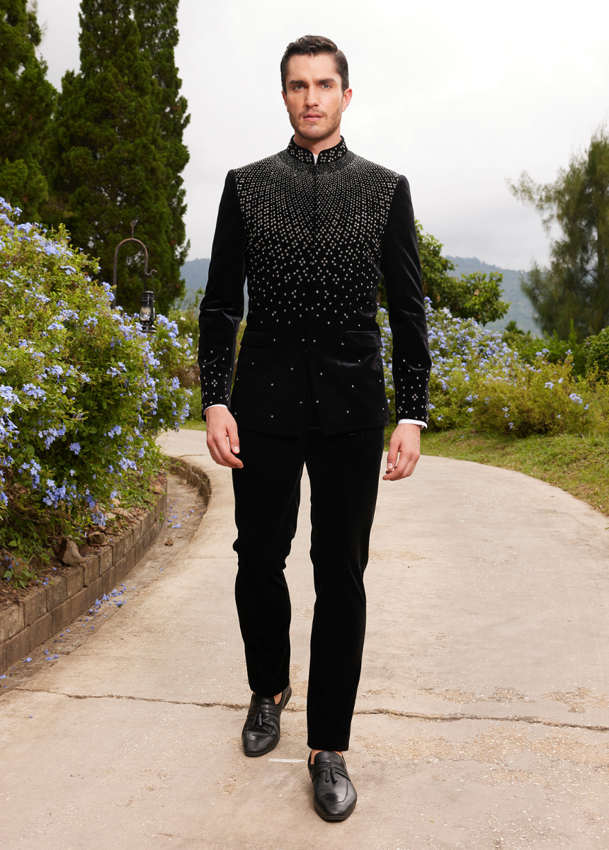 - Tailored from premium velvet, this bandhgala delivers a plush texture and regal elegance, perfect for standout occasions