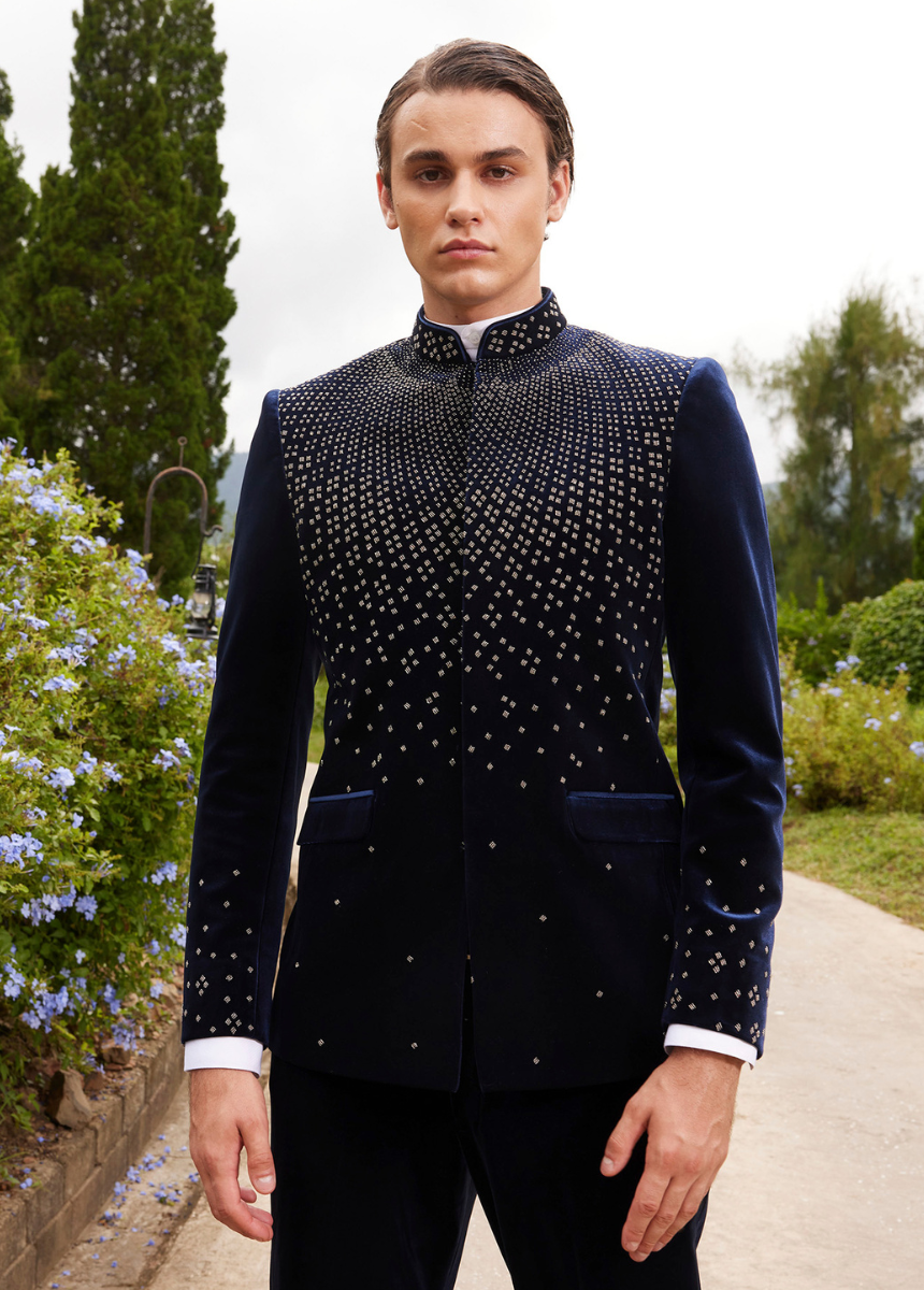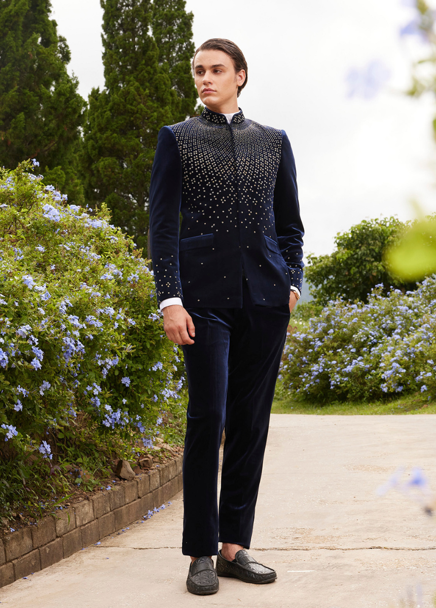 - Tailored from premium velvet, this bandhgala delivers a plush texture and regal elegance, perfect for standout occasions