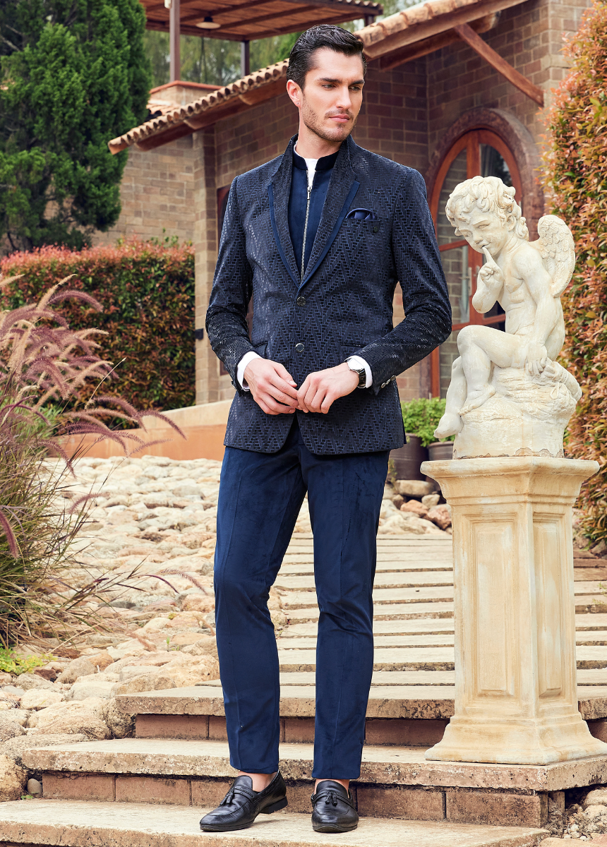 - Rendered in navy blue, providing a sleek and versatile foundation for any formal occasion