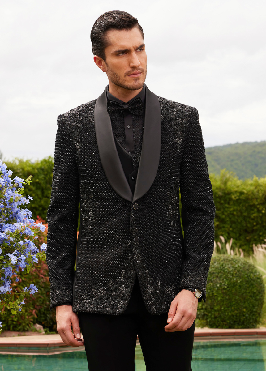 - Tailored for men who appreciate formal elegance with a touch of glamour, this jacket is perfect for galas, weddings, or red-carpet events