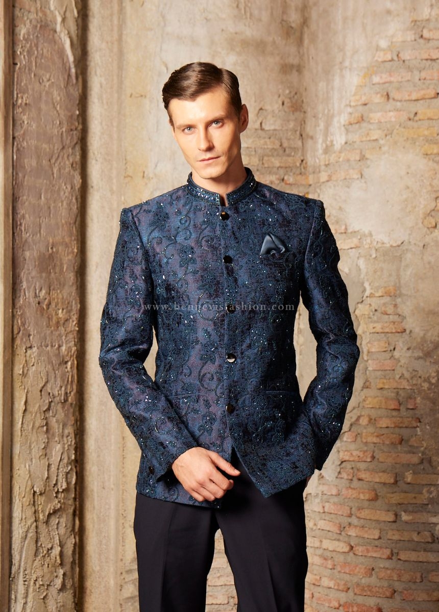 Crafted from luxurious premium fabric that combines rich texture with subtle shimmer, featuring an intricate blue paisley pattern for a sophisticated finish