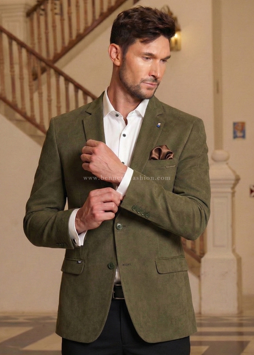 - Crafted from a refined, subtly textured fabric, this jacket exudes an air of sophisticated elegance.