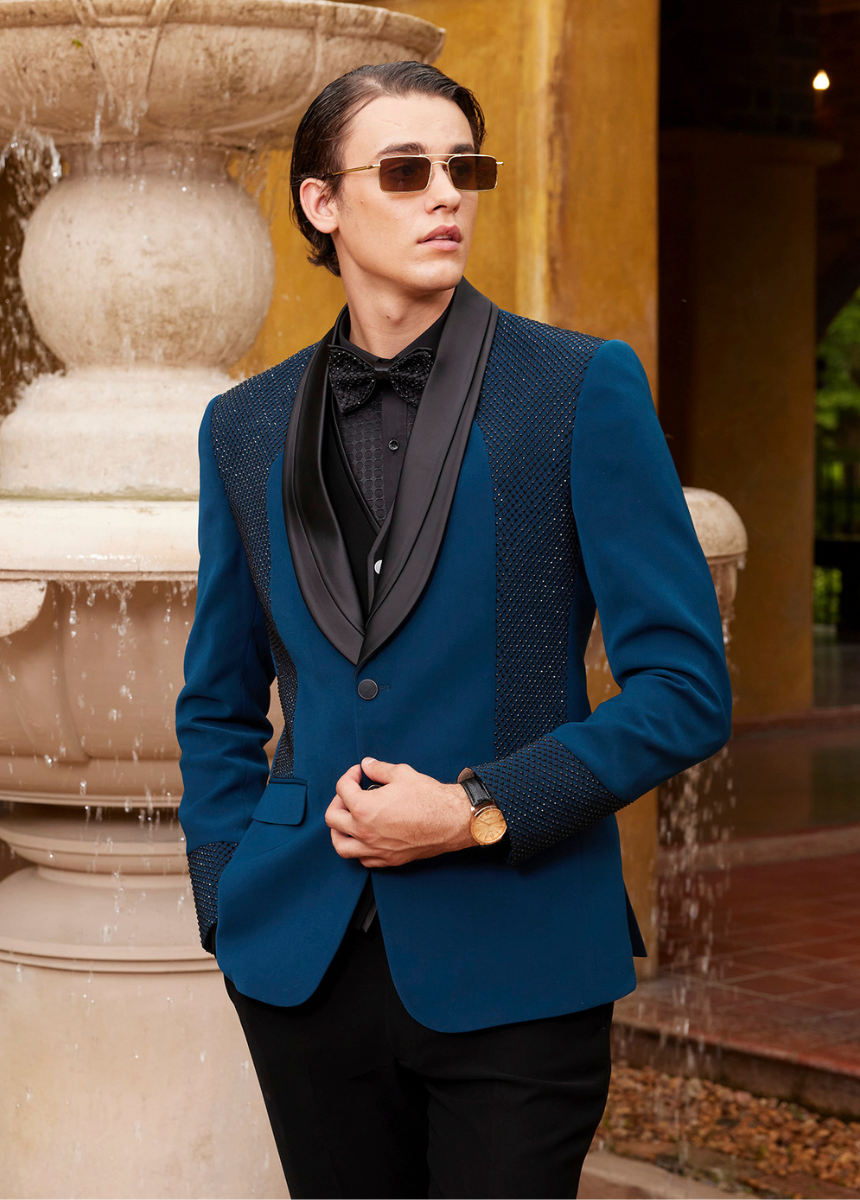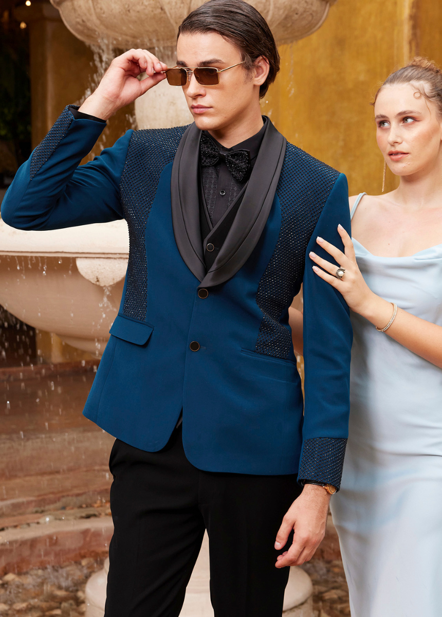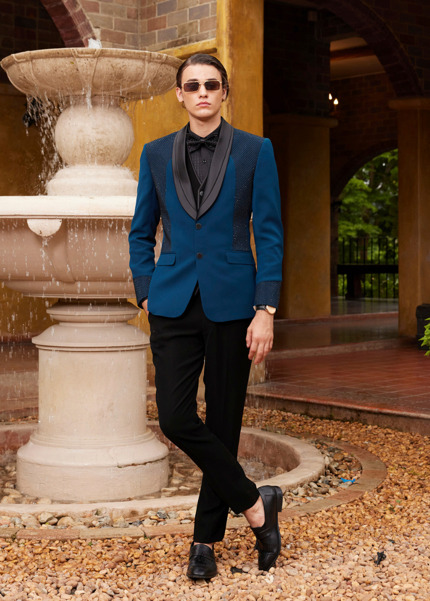 - Presented in a deep teal, adding a refined and bold twist to fashion tuxedo